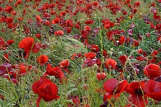 A poppy blooms...